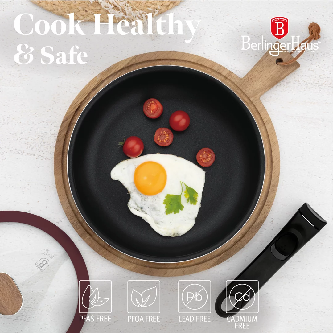 De ergonomiske soft-touch-håndtakene har et lekkert trelook og holder seg kjølige under bruk, mens tempererte glasslokk med dampventil gir trygg og kontrollert matlaging.
