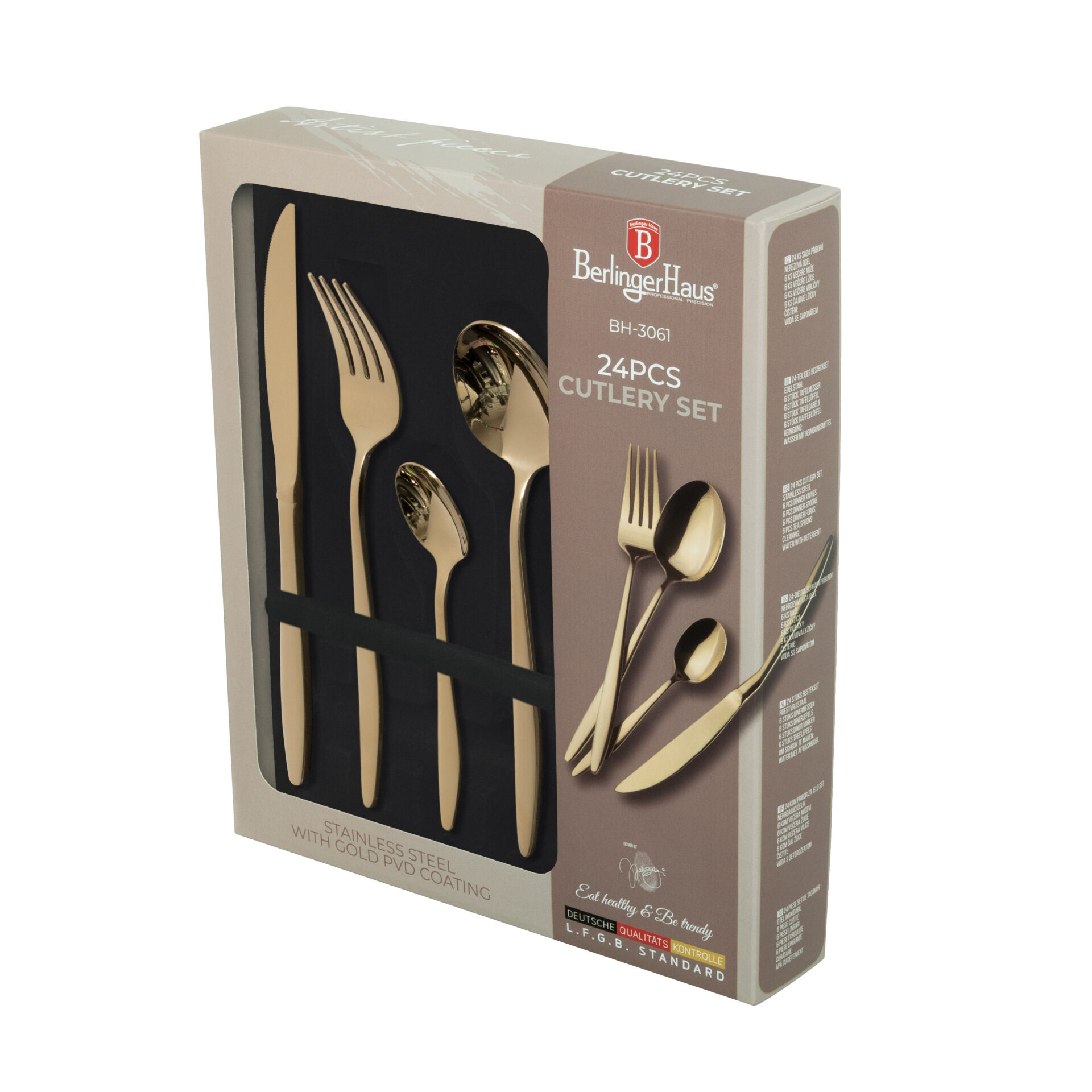 Oppdag Berlinger Haus BH 3061, et bestikksett der luksus møter funksjonalitet. Med eksklusiv champagnefarge, speilblank finish og førsteklasses rustfritt stål, er dette settet skapt for deg som setter pris på kvalitet og estetikk. Et blikkfang på ethvert dekket bord – hver dag eller ved spesielle anledninger.