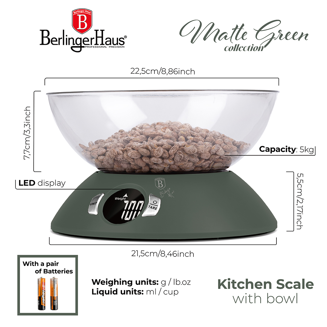 Berlinger Haus Kjøkkenvekt med Bolle – Matt Grønn