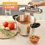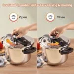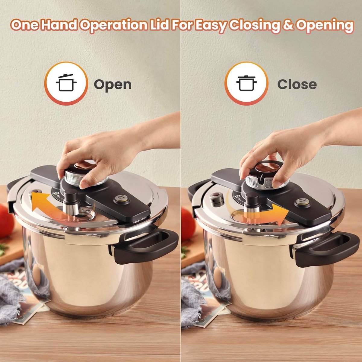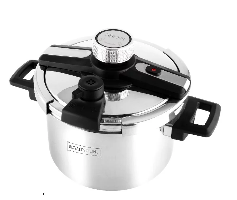 Med Royalty Line 4-6-8 liters trykkoker i rustfritt stål kan du tilberede smakfulle måltider på en brøkdel av tiden. Kok lapskaus på bare 20 minutter, samtidig som du bevarer næringsstoffene og vitaminene. Denne trykkokeren er utstyrt med en sikker høytrykksventil og en pålitelig sikkerhetsmekanisme, noe som gjør matlagingen trygg og enkel. Med en romslig kapasitet på 4 til 8 liter er den ideell for både daglige måltider og større retter. Perfekt for deg som ønsker rask og effektiv matlaging med minimal innsats!