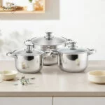 Oppgrader kjøkkenet ditt med et moderne grytesett med Sapphire-forsterket keramisk belegg. Dette gir ekstra slitestyrke, bedre varmefordeling og lengre levetid – perfekt for både hverdagsbruk og mer avansert matlaging.