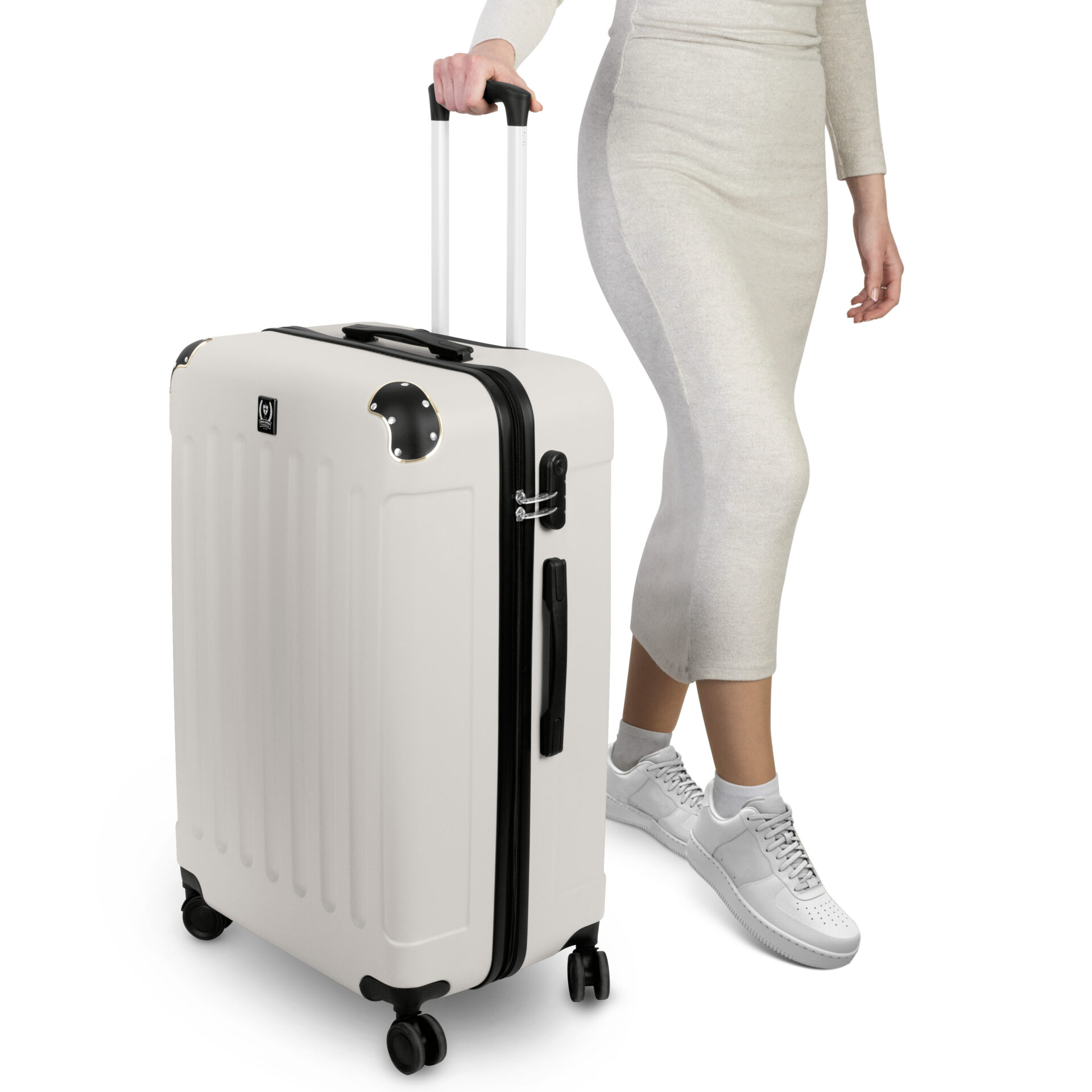 Dette elegante settet fra SWISS HUFEISEN består av tre slitesterke kofferter i størrelsene 20”, 24” og 28”. En sofistikert kremfarge gjør dem til et blikkfang på enhver flyplass. Perfekt for alt fra helgeturer til lengre reiser.